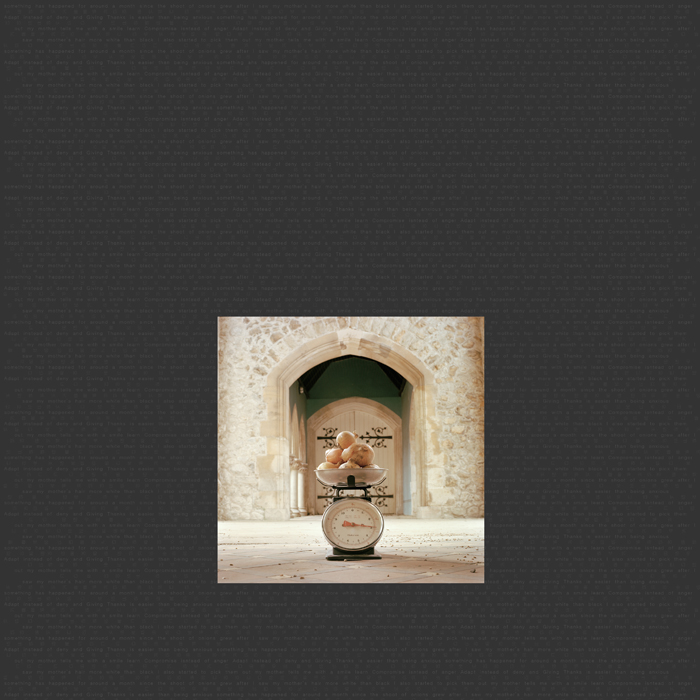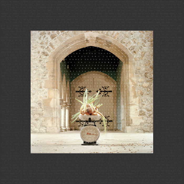 This work explores the process of acceptance and tolerance of the self as we change through life. Such changes become obvious when we look at ourselves in the mirror, a reflected image can sometimes feel alien, not our reality. This image is like a memory that comes back to haunt us, yet as time goes on loses its keen edge. The painful memories drive away sleep, like a horrible lullaby. Now, I want to use this work as my mother's night prayer, to create tomorrow's peaceful memories.
