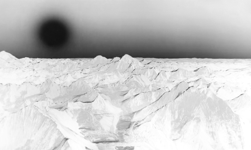 Envisioning Absence came out of my fascination with the virtual environments and representations of Earth offered by so called "virtual globes". A virtual globe is a detailed representation of Earth, generated automatically by the accumulation of satellite images; it is therefore an autonomous world. Building a relationship between the autonomy of the virtual globe with the idealisation of a world devoid of human presence, I position myself as an outsider to it and wander virtually, in search for landscapes. I make direct imprints from my screen of the landscapes I 'discover', and in so doing, explore contradictions between the digital and immaterial nature of these virtual representations with the gesture and materiality of the analogue photographic process.